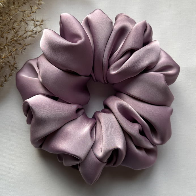 Gumka do włosów scrunchie z jedwabiem Spokojny Fiolet Premium XL