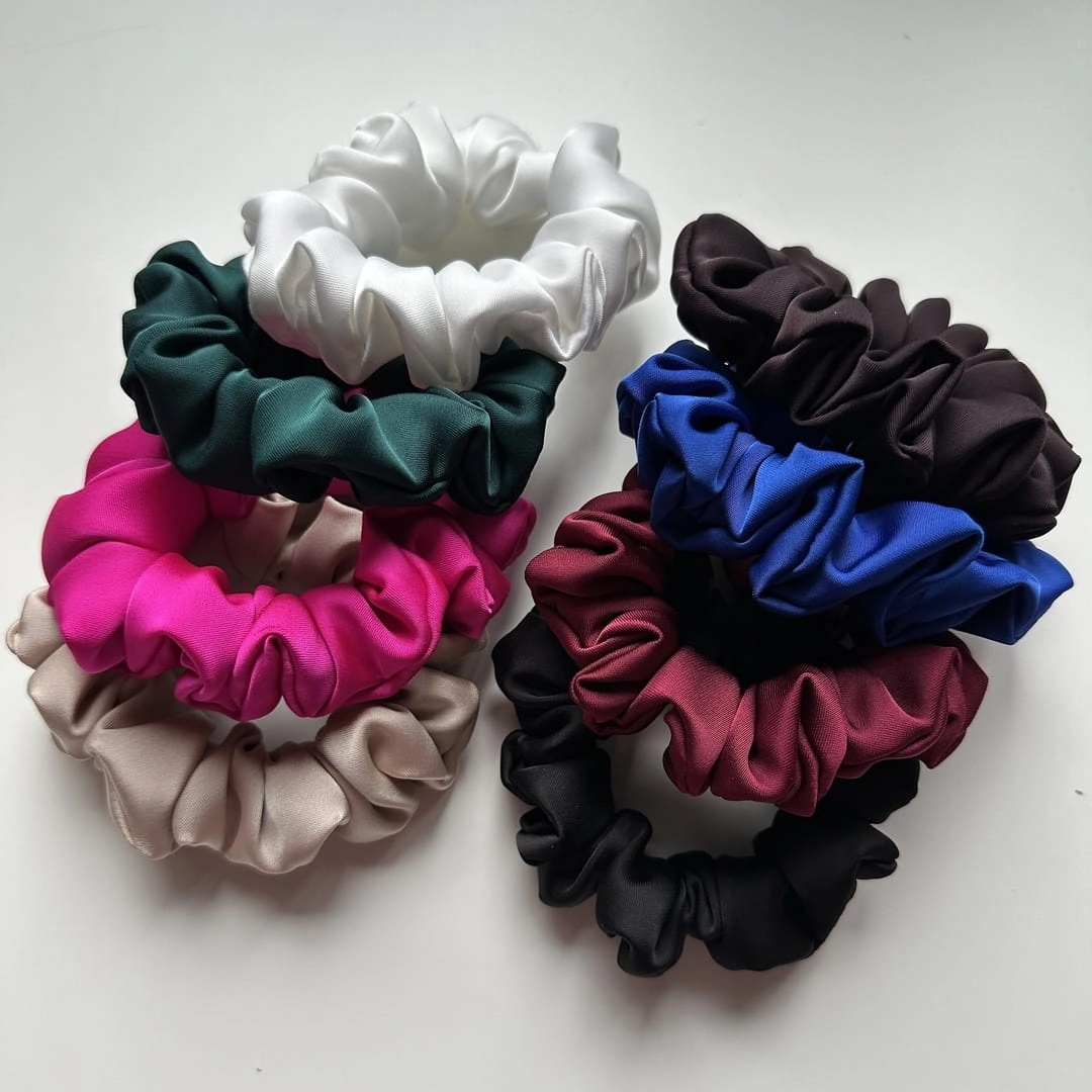Nasze scrunchie są idealne dla osób zarówno z cienkimi, jak i gęstymi włosami, spośród 5 rozmiarów scrunchie - sugeruj się ilością użytego materiału ozdobnego (gumka użyta do scrunchie jest tej samej długości)