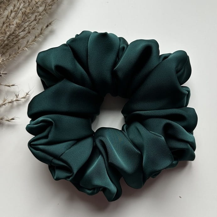 Gumka do włosów scrunchie z jedwabiem Szmaragd Premium XL