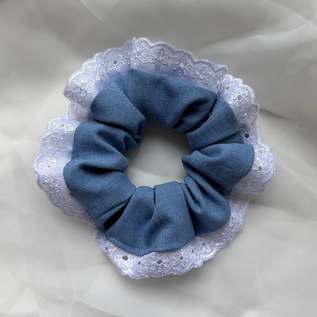 Gumka do włosów z falbanką scrunchie z koronką Jeans