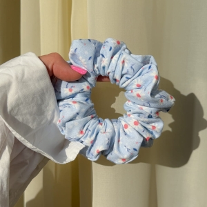Gumka scrunchie do włosów bawełniana Niebieskie Stokrotki