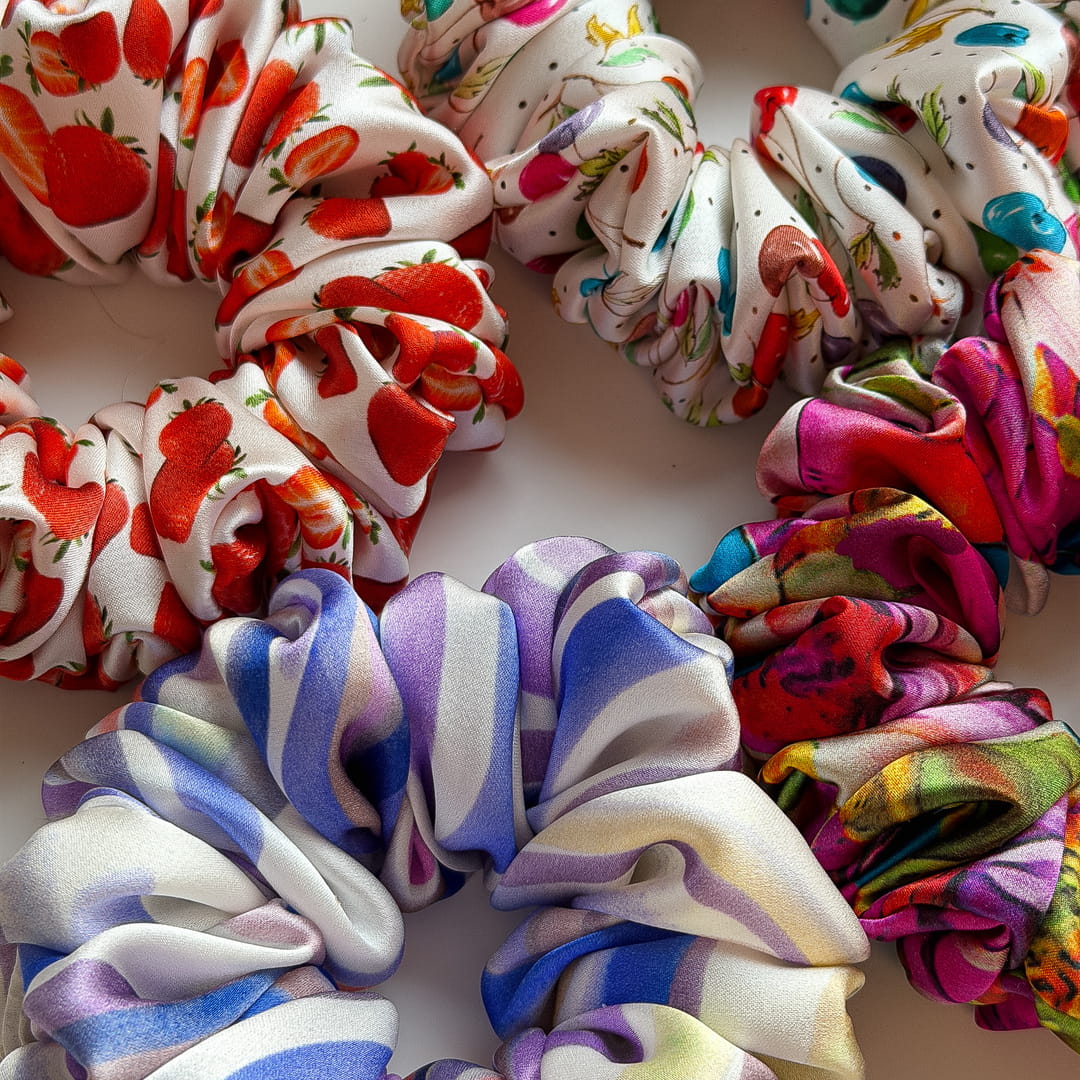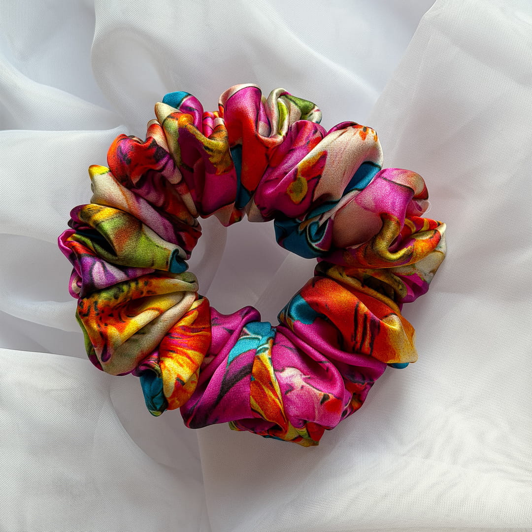 Jedwabna scrunchie do włosów Flowers M - 100% Jedwab