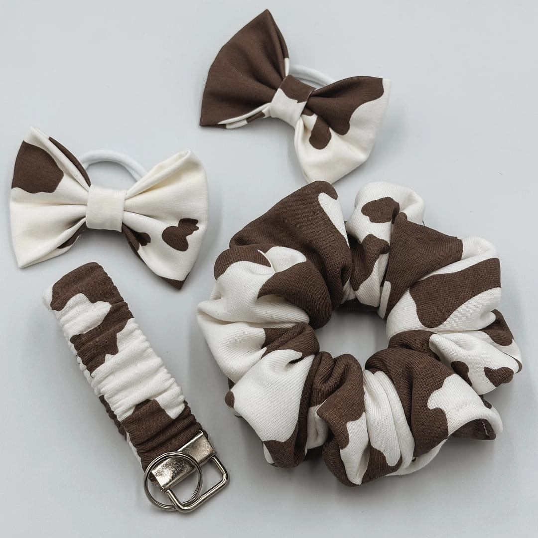 Uroczy komplet dwóch małych gumek do włosów z kokardkami “Brown Cow” to idealny dodatek dla każdej małej miłośniczki stylu. Wykonane ręcznie z miękkiej, naturalnej bawełny, są delikatne dla włosów i wygodne w noszeniu – nie ciągną, nie plączą i pięknie prezentują się w każdej fryzurze.