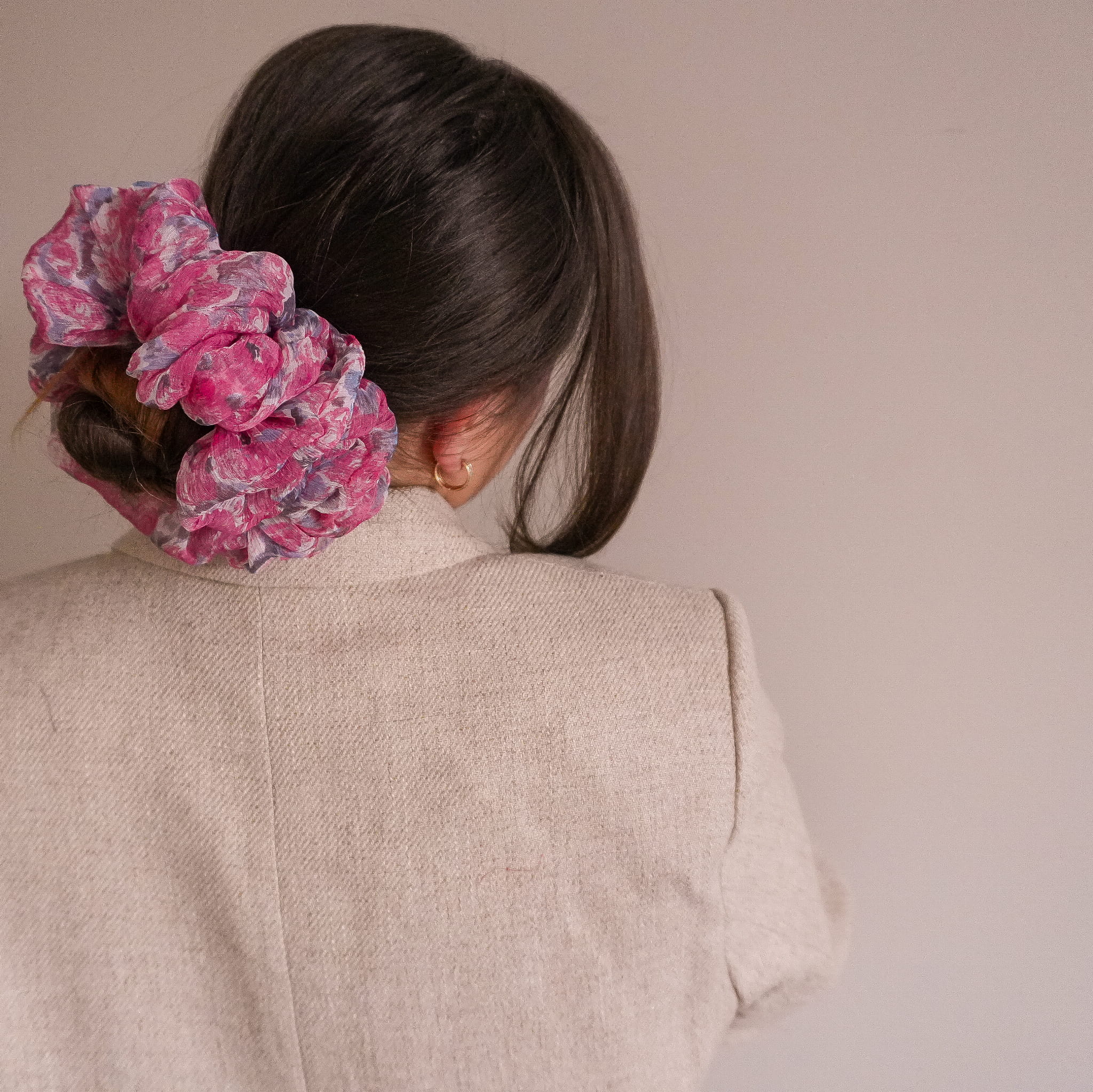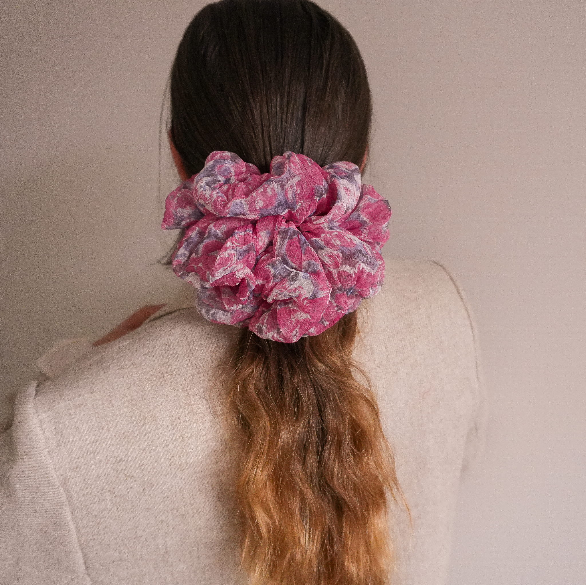 LIMTOWANA Gumka do włosów scrunchie PINK FLOWER XXL - 2 scrunchie XL w 1!