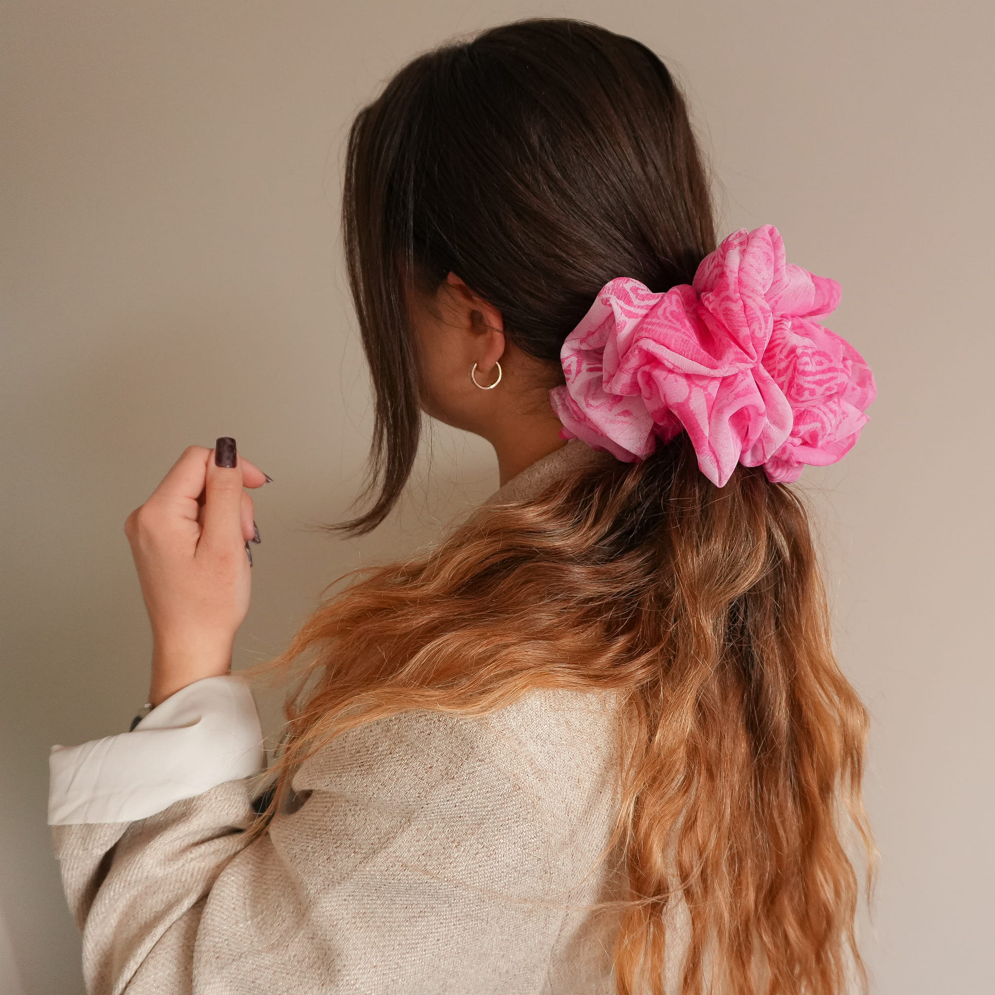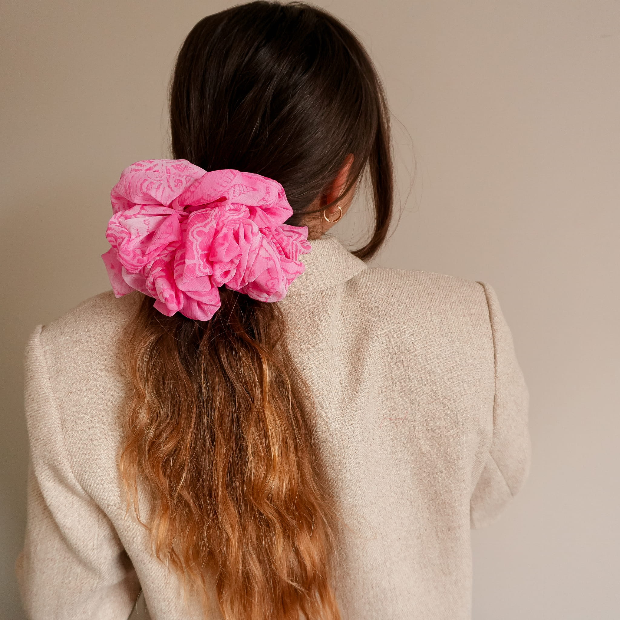 LIMTOWANA Gumka do włosów scrunchie PINK ORNAMENT XXL