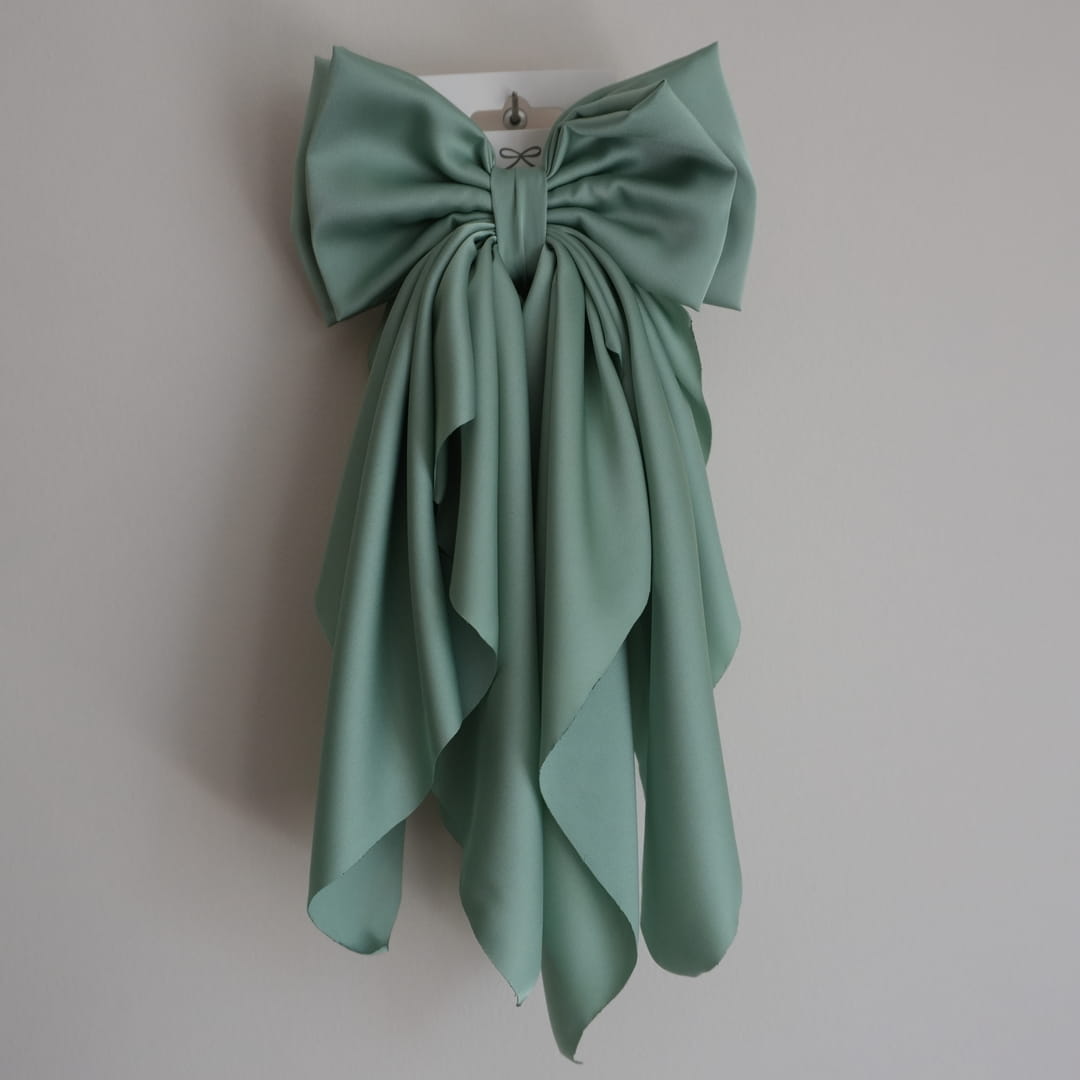 Limitowana ! MAXI kokarda do włosów z jedwabiu z dużą falbaną Szałwia Elegantka