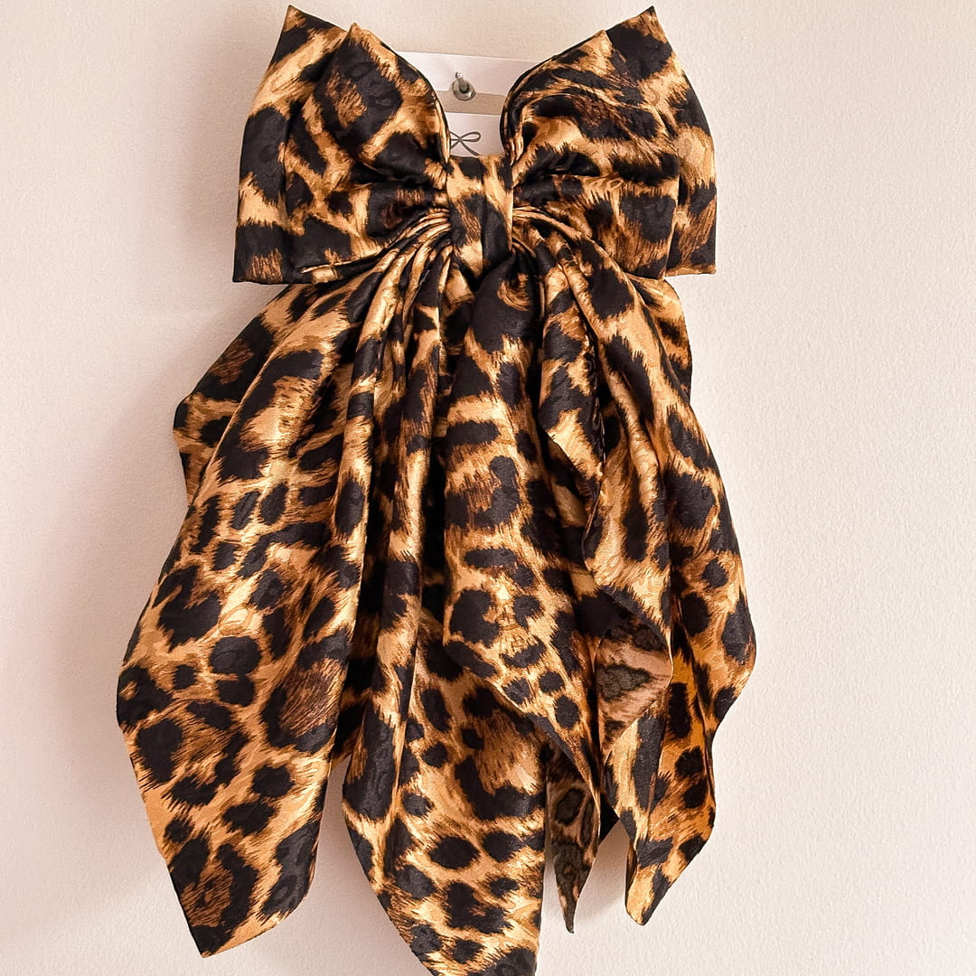 MAXI kokarda do włosów z jedwabiu z dużą falbaną Panterka Żakard Armani