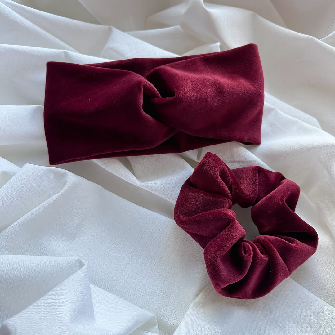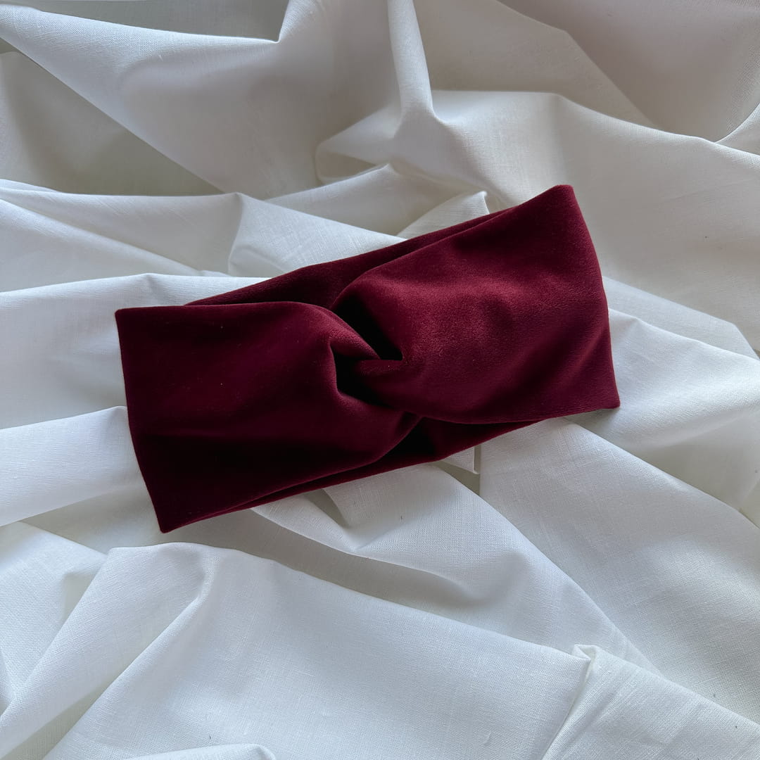 Opaska do włosów welurowa Bordowa