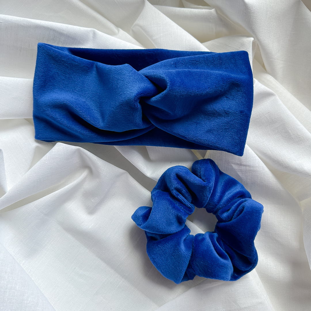 Opaska do włosów welurowa Niebieska Kobalt