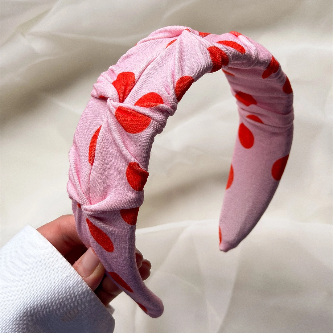 Pastelowa bawełniana opaska do włosów Czerwone Kropki