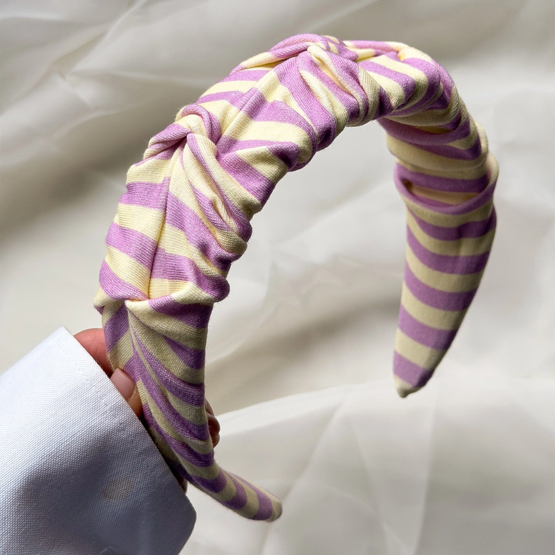 Pastelowa bawełniana opaska do włosów Fioletowe Paski