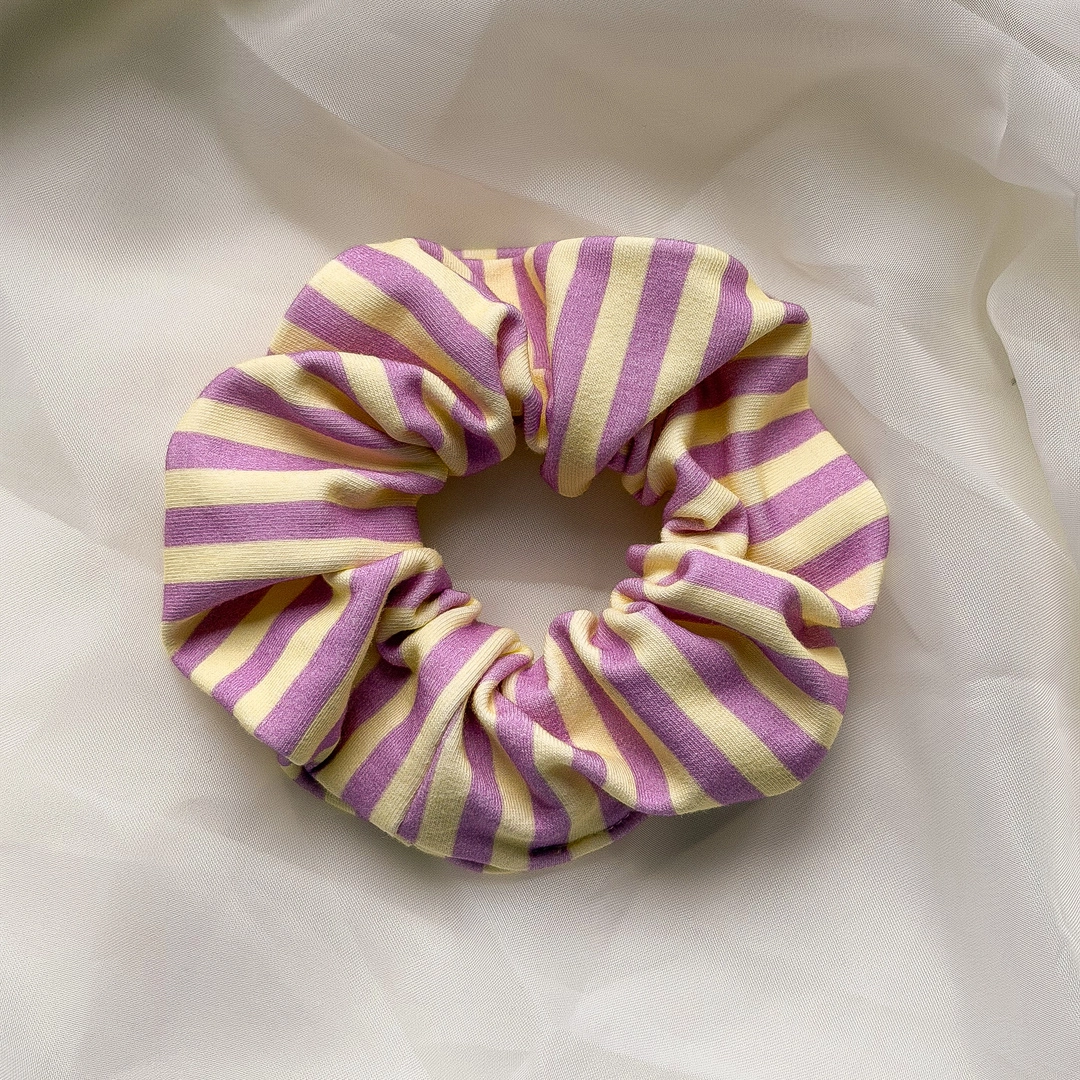 Pastelowa bawełniana scrunchie do włosów Fioletowe Paski