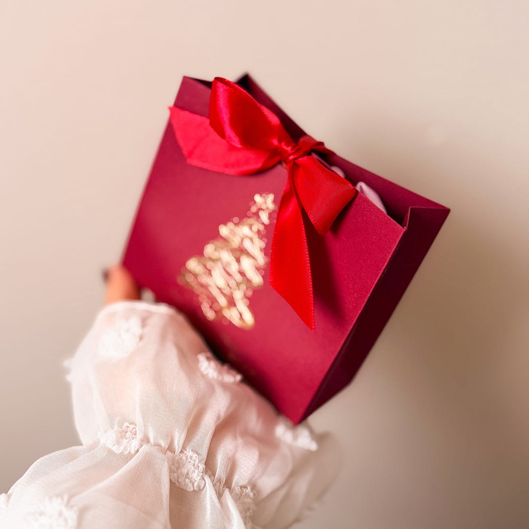 Świąteczne Pudełko prezentowe ze wstążką – idealne opakowanie na scrunchie na prezent