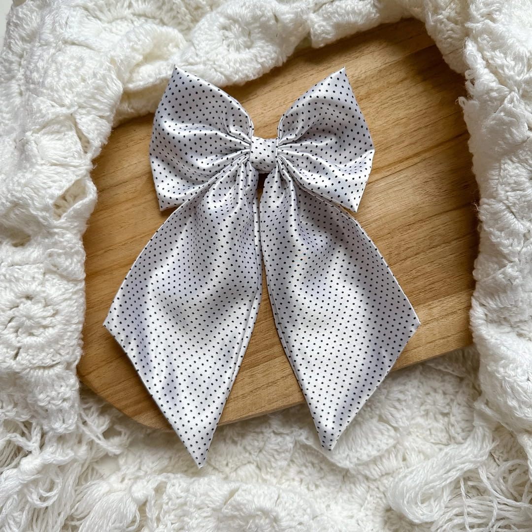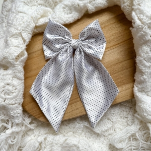 Satynowa kokarda do włosów z falbaną Biała Mini Kropki