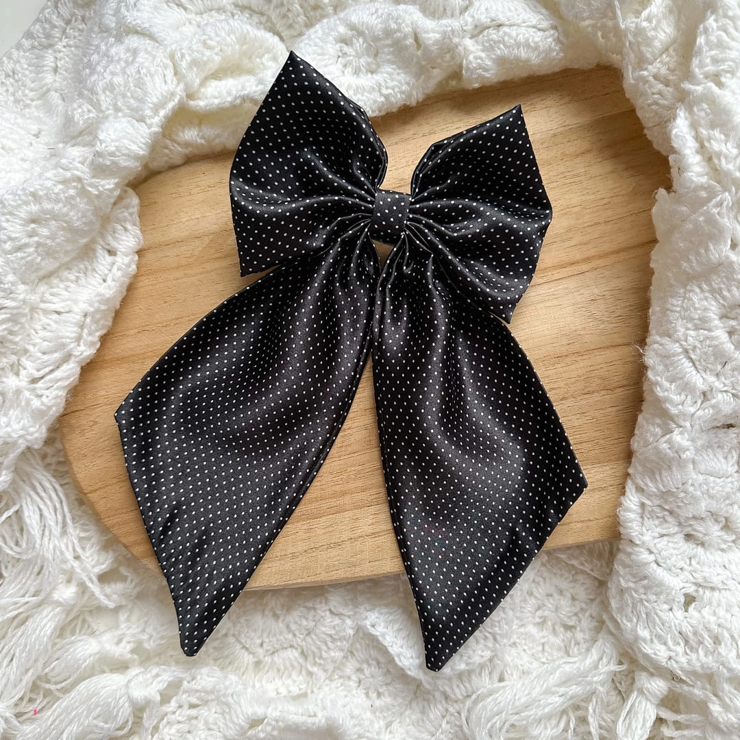 Satynowa kokarda do włosów z falbaną Czarna Mini Kropki