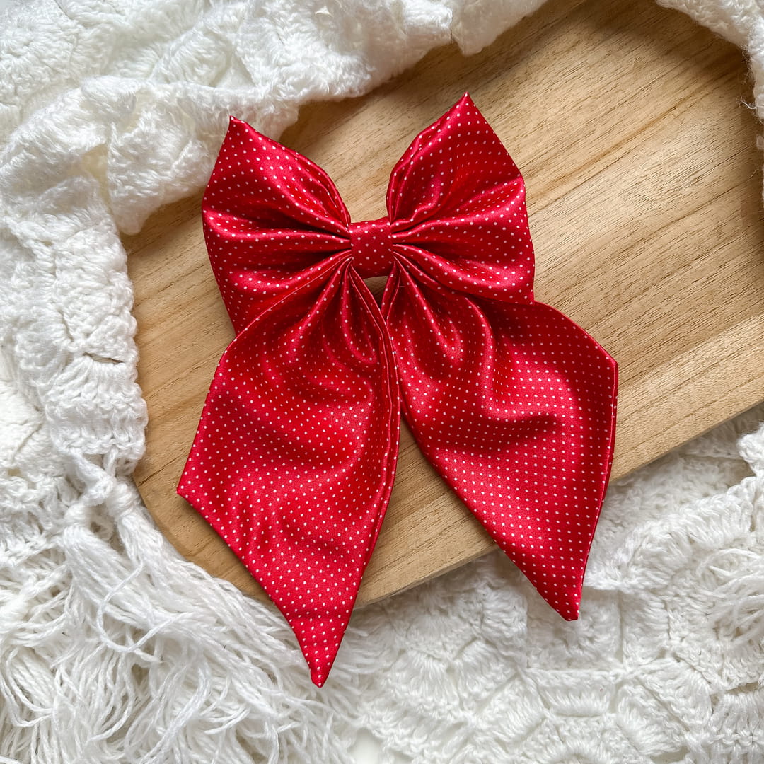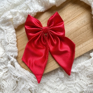 Satynowa kokarda do włosów z falbaną Mini Kropki Czerwona