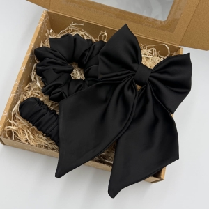 Zestaw prezentowy świąteczny scrunchie, brelok i kokarda Czarny Premium