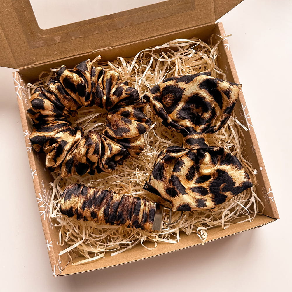 Zestaw prezentowy świąteczny scrunchie, brelok i kokarda Panterka Armani
